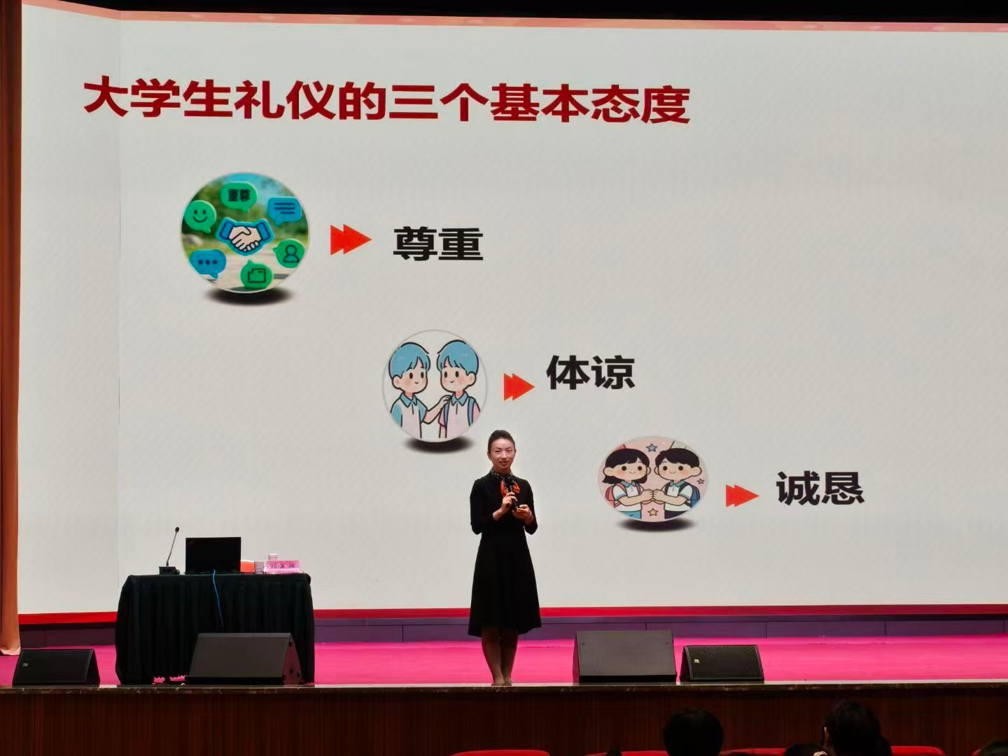 3月22日,为提升团学骨干综合素养,规范学生工作、志愿服务等方面礼仪标准和工作能力,校团委组织开展2026年学生礼仪培训会。本次培训邀请学生发展与教育心理学博士、国际注册高级礼仪培训师、教育部出国留学行前培训特邀礼仪讲师杨春静老师授课。校青年志愿者协会和大学生艺术团骨干成员、学生代表等700余人参加培训。